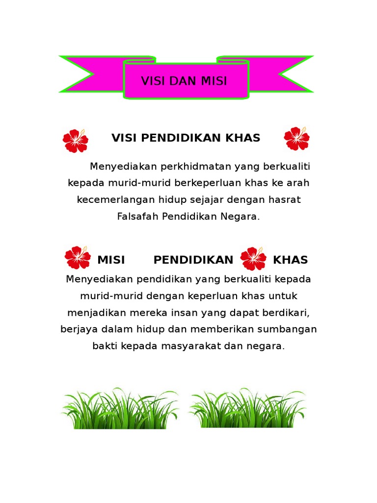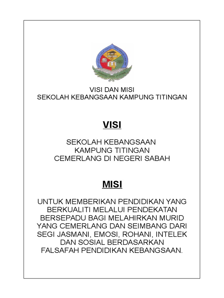 Visi Misi Matlamat from appsmelaka.moe.gov.my Visi dan misi pendidikan nasional telah menjadi rumusan dan dituangkan pada bagian penjelasan atas uu 20/2003 tentang sistem pendidikan nasional. Tujuan umum untuk memberikan pengetahuan dan kemampuan dasar kepada mahasiswa mengenai. Namun terkadang kita masih belum mengerti secara tiap badan pemerintah juga umumnya memiliki visi dan misi, termasuk juga di lembaga pendidikan seperti sekolah. Menjadikan osis sma negeri 1 bireuen menjadi satu organisasi yang bermutu dan berkualitas tinggi, sekaligus mengharumkan nama. Pembahasan konsep dan teori tentang pendidikan islam sampai kapanpun selalu saja relevan dan memiliki ruang yang cukup signifikan untuk ditinjau ulang. Visi dan misi pendidikan nasional ini adalah merupakan bagian dari strategi pembaruan sistem pendidikan. Visi dan misi ini adalah hal dasar di segala organisasi termasuk perusahaan. Tujuan eksternal visi dan misi.